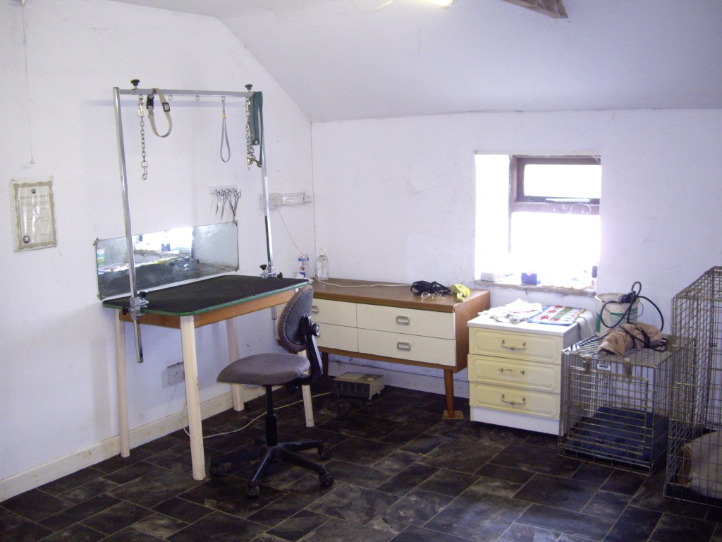 Being on a farm it was easy to find space to set up a salon, the old livery coffee room already equipped with water was the obvious choice. So a super large dog bath, electric shower, sink unit and grooming table were quickly put in place, and of course, the old sofa remained for the ‘clients!’ I had a huge dog cage we had used for puppies – as you need a cage in a dog groomers, well it never got used and is stored in the garage! The dogs free run and curl up on the sofa!
